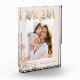 Foto für die Blumengebläse. Zeigen Sie Ihre hochgeschätzten Erinnerungen mit diesem Foto der Blumenblume Mama. Stilvoll und modern mit eleganten Aquarellfarben, rosafarbenen Rosen und Salbeigrün auf einem hellrosa Hintergrund. Einfache Anpassung mit Ihrem Foto, Namen und Jahr.