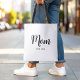 Mama etablierte Junge Mutter Geschenk - Minimal elegante Black Script Mama Tote Bag. Feiern Sie Mütter und Mama's to be Mother am Tag mit diesem schlichten und eleganten Taschendesign, in dem das Wort "Mama" in spielerischem Schriftzeichen auf jeder Seite für ein fröhliches Ambiente dargestellt wird, und mit einem "Est.-Jahr" unter der Haustür, als Sie eine Mutter wurden. Sie können auch "Mama" für Mama, Mama, Mam, Mama oder jeden Namen, den Sie bevorzugen, ändern.