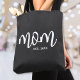 Einfache Script-Mama Personalisiert Tote Bag. Feiern Sie die Mutterschaft mit diesem minimalistischen Design mit dem Wort "Mutter" in einem fließenden handgeschriebenen Drehbuch-Schriftart auf beiden Seiten in Weiß auf einem schwarzen Totbeutel. Unten rechts, eine klassische Serife "est. year" fügt eine persönliche Touch hinzu - perfekt für eine Mutter, eine junge Mutter oder um Mama jederzeit zu feiern. Die Farbe der Tasche kann geändert werden. Dieses saubere, moderne Design eignet sich hervorragend für den Alltag der Mutter und bietet eine zeitlose Art, Mama stilvoll zu ehren.
