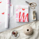 Elegantes Verpackungspapier für Mama's Geschenke. Rosa Blumengrafik mit roten Schmetterlingen und das Wort MAMA in einem roten Schriftart geschrieben. Gib Mama ihr besonderes Muttertagsgeschenk, Geburtstagsgeschenk, Jubiläumsgeschenk, Weihnachtsgeschenk, verpackt in diesem wunderschönen Verpackungspapier, das nur für sie gemacht wurde.