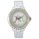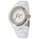 Eine elegante Uhr für die Mama! Schöne Rose und winzige farbenfrohe Blume verflechten sich mit grünen, fließenden Weinreben, die das Wort "Mama" ausdrücken. Zum Geburtstag oder Mütterstag ist es das perfekte Design, um die ganz besondere Person in Ihrem Leben zu ehren.