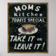 © Pela Studio / Wilder Apple. Ein schwarz-weißes Retro-Schild mit einem Zitat über Mama's Küche. Heute ist das Besondere: Nehmen Sie es oder Verlass es!