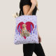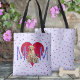 Tote Tasche, personalisiertes Geschenk für Mama. Gelbe Labrador Design ist eine Vorlage, in der ein Foto hinzugefügt werden kann, um den Hund zu ersetzen. Laden Sie das Foto Ihres Haustieres oder ein Kinderbild hoch. Lila und rotes Design mit großem "M's" und rotem Herzen in der Mitte. Kleine rote Herzen bedecken die Tasche auf beiden Seiten über eine sehr blassfarbene Lavendelfarbe. Diese Tasche ist ausgekleidet und hat schwarze Gurte.
