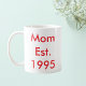 Mit dieser minimalistischen Mama Est feiert sie das Jahr, in dem sie ihren Lieblingstitel verdient hat. [Jahr] Kaffee-Tasse. Fügen Sie einfach den Meilenstein Jahr, um eine tägliche Erinnerung von Liebe, Familie und alle Erinnerungen seit diesem ersten besonderen Tag zu schaffen. Perfekt für Muttertag, Geburtstage, Babyankündigungen, oder nur weil dieser personalisierte Schlamm jeden Schluck in eine herzliche Hommage an ihre Reise durch die Mutterschaft verwandelt. Geschenke es junge Mütter oder langjährigen Supermüttern gleich und beobachte, wie sie jeden Morgen mit Stolz aufleuchten.