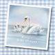 Diese Servietten verfügen über eine digitale Aquarellfarbe von einem Mama Swan Schwimmen mit ihren Babys Schwäne in einem ruhigen blauen See mit einem pfirsichfarbenen Sonnenuntergang im Hintergrund.