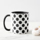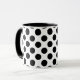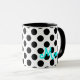 Personalisierte Polka Dot Kaffeetasse in Schwarz, Wasser und Weiß.