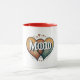 Diese Tasse zeichnet sich durch ein herzzerwärmendes Design mit zwei ineinander greifenden Herzen aus. In jedem Herzen werden die Wörter "Mama" und "Vater" angezeigt, die die Liebe und Verbindung zwischen Eltern und Kind symbolisieren. Es ist eine perfekte Art, Ihre Familie zu schätzen.