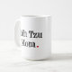 Weiße Tasse mit schwarzem Text und einem kleinen roten Herzen