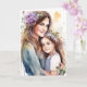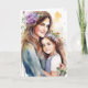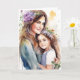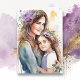 Schöne Abbildung einer Mutter und Tochter mit violetten Blumen in ihren Haaren Aquarell ai art. Happy Mother's Day Card mit einer personalisierten Nachricht im Inneren.