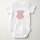 Mama-u. Vati-Liebe ich. Ideal für jene Babys, die wissen, werden sie gut geliebt. Vorderansicht des rosa Elefanten auf der Front des Bodysuits, hintere Ansicht des rosa Elefanten auf der Rückseite des Bodysuits