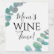 Weinflaschen-Etikett der Mama. Diese lustigen Weinflaschen-Etiketten sind mit Aquarellfarben-Eukalyptus-Blätter und den Worten "Die Weinzeit der Mama!" geschmückt. Der gesamte Text ist anpassbar. Original Wasserfarbe © Michele Davies.