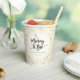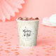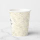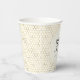 Mama to bee, Baby dusche Papiertassen. Hübsches, schwarzes Drehbuch mit niedlichen Akzenten von Honigbienen und goldenen Wabenmustern auf der honigcremefarbenen Hintergrundfarbe.