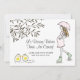 Mignonne maman lunatique de marcher avec un parapluie et des bottes de pluie. Deux poussins sont au premier plan et le test dit : Il pleut des bébés, des jumeaux viennent ! Personnalisez avec votre nom et votre date d'échéance.