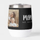 Maman Etabli Cadeau photo avec un minimum élégant script maman établi date ou dates de l'année votre premier enfant et chaque enfant supplémentaire est né dans le thème moderne noir et blanc. Pour ajouter une autre photo pour votre deuxième enfant sur la deuxième image, utilisez l'outil d'édition.