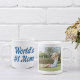 Mug with World's #1 Mom with your own photo and 3D sea blue text. Mug disponible en plusieurs styles et couleurs.
