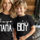 Feiern Sie die Bindung zwischen Mutter und Sohn mit diesem charmanten, passenden Set! Der Babybodyanzug ist mit einem typografischen weißen Tex ausgestattet, der eine frische und spielerische Atmosphäre verleiht. Der Bodysuit zeigt stolz das Wort "Mama's Boy" in weißem Text an und eignet sich damit perfekt für den passenden Mama T - Shirt. Der passende "Mama" T - Shirt ist im gleichen eleganten Blumenstil gestaltet und bietet ein gemütliches und dennoch stilvolles Aussehen für Mütter, die sich mit dem Sohn gewollt haben. Dieses Set aus weichem, atmungsaktivem Stoff ist nicht nur bezaubernd, sondern auch bequem für den ganzen Tag. Ideal für lässige Ausflüge, Familienfotos oder einfach nur beim Zuhause schnipsen. Größen und Farben für Jungen und Mütter!
