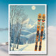 Bonjour des montagnes enneigées de Mammoth Mountain, Californie! Nous espérons que vous passerez de merveilleuses vacances à ski. Cette carte postale présente un magnifique paysage montagneux bleu-gris avec des planches de ski rétro dans un motif tribal orange. Toutes les phrases de texte peuvent être customisées pour vous convenir!