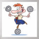 Ein lustiger Mann, der auf einem Cog stehend ist, während er die Kogs ausbalanciert. Dieses Design sieht auf diesem Poster wirklich effektiv aus