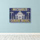 Dieses lustige, personalisierte Design ist perfekt für die Dekoration Ihrer Männerhöhle. Es heißt "Ihr Name" und zeigt eine Kontur des Taj Mahal mit Hämmern, Schraubenziehern und einem kleinen Auto, das aussieht, als wäre es in der Mitte geparkt. Fügen Sie einfach Ihren Namen hinzu. Die Farben sind blau, grau und goldgelb.