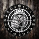 Mit diesem runden Design mit einem auffallenden Schwarz-Weiß-Bierglas, das von einem kühnen Ziel gerahmt ist, erweckt die Jagd im Inneren den Nervenkitzel. Dieses Dekor ist perfekt für Grotten oder Jagdhütten geeignet und verleiht Ihrem Raum ein abenteuerliches Ambiente.