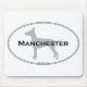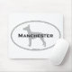 Riesige Buchstaben, die Manchester buchstabieren, um das riesige Herz dieser Hundezucht Manchesters Terrier zusammenzubringen. Schließt eine schöne volle Körperschuss-Silhouette dieser wunderbaren Hundezucht mit ein.