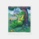 Ein lächelnder grüner Drache lehnt sich nach seinem Snack aus der großen Schlacht gegen einen Baum zurück.