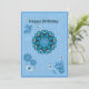 Glückliche Geburtstagskarten Mandalas, mit Schmetterlingen und Blume für sie oder ihn. Aquamarine Motive mit blau-weißem Hintergrund