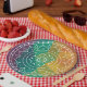 Mandala-Blume in regenbogenfarbenem, polyfarbenem Pappteller