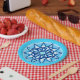Mandala-Muster in Türkis, Kobalt und Weiß Pappteller