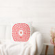 Kopfkissen mit sieben schönen Herzkreisen und dem M-Brief in der Mitte. Farbkombination Rot und Weiß. Liebe ist überall!
