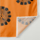 Ein lustiges abstraktes Muster tanzt über einen lebendigen orangefarbenen Hintergrund auf diesem auffälligen Wandteppich.