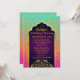 Bollywood oder Arabian Nights Themenabendkarte in heißen Rosa, Mandarine und Aqua Obre mit Goldfolienakzenten.