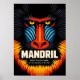 Dieses Kunstwerk präsentiert ein kühnes, symmetrisches Porträt eines Mandrills, zentriert vor einem soliden schwarzen Hintergrund. Das Gesicht ist stark stilisiert, mit scharfen grafischen Formen und gesättigten Farben, die die charakteristischen Merkmale des Tieres definieren. Lebendige Rottöne, Oranges, Blau- und Gelbtöne strahlen durch die Schnauze und das Fell nach außen, während durchdringende gelbe Augen die Komposition mit Intensität und Fokus verankern.