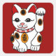 Maneki Neko Cat auf rotem Hintergrund Quadratischer Aufkleber