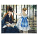 Manet the Railway print. Ölmalerei auf Leinwand aus dem Jahr 1873. Eines der bekanntesten Gemälde von Edouard Manet, The Railway oder The Gare Saint-Lazare (Le Chemin de Fer), zeigt das Modell Victorine Meurent, das vor einem Eisenzaun sitzt, mit einem offenen Buch und schlafende Welpe in ihrem Schoß. Neben ihr steht ein kleines Mädchen in einem niedlichen, weißen Kleid mit einem großen blauen Band. Der weiße Dampf eines sich bewegenden Zuges ist hinter dem Zaun zu sehen. Ein wunderschönes Beispiel für Manets realistischen Sinn des bevorstehenden Modernismus. Ein großartiges Geschenk für Fans von Manet, berühmte Welpenmalereien, französischer Realismus und moderne Kunst.