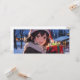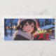 Manga-Illustration, animiert, von einem lächelnden Mädchen mit Weihnachtshut, das ein Geschenk mit Freude hält