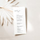 Ce menu mariage moderne et élégant est le moyen idéal pour ajouter une touche de sophistication à votre réception de mariage. Doté d'une typographie propre et moderne sur un arrière - plan blanc classique, ce menu est à la fois intemporel et élégant. Avec des champs de texte personnalisables, vous pouvez facilement ajouter vos propres éléments de menu et personnaliser le menu pour s'adapter à votre thème et style mariage. Pour modifier les détails, cliquez sur "Détails". Pour déplacer le texte ou modifier la taille, la police ou la couleur, cliquez sur "Modifier à l'aide de l'outil de conception". Conçu pour coordonner avec pour la collection de Faire-part de mariage "Chloe". Voir le lien de collection sur cette page pour voir tous les éléments correspondants dans cette belle conception.