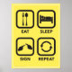 Manger. Dormir. Plaque. Recommencer. Une affiche d