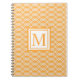 Dieses moderne, trendige Notebook zeichnet sich durch ein weißes geometrisches Gitter aus, das sich durch ein durchgehendes Design mit einem sorbet-farbenen Hintergrund aus. In der Mitte ist ein gerahmter monogramm Buchstabe in der gleichen Mangofarbe.