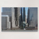 architektonische Details der Innenstadt von New York City, im Herzen des Finanzviertels, von der anderen Seite des Flusses Hudson aus gesehen. Was für ein herausforderndes Rätsel!