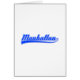 Manhattan, New York City, geschrieben mit einem Swash (Schwanz). Schriftart in Weiß und Blau. Originelles Textdesign.
