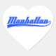 Manhattan, New York City, geschrieben mit einem Swash (Schwanz). Schriftart in Weiß und Blau. Originelles Textdesign.