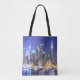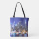 Schönes Panorama von New York in der Nacht. Berühmte Gebäude, die glänzen
