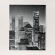 Puzzle in halb abstrakter Illustration von Manhattan in Schwarz-Weiß, beleuchtet mit Stadtlichtern, unter einem sternförmigen Mitternachtshimmel