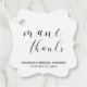 Typografy Brautparty favorisieren Tags mit der Meldung "Mani Danke" in schwarzer Kalligrafie mit einem Herz, das das "i", und Ihren Namen, Event Titel und Datum unten, auf einem weißen Hintergrund. Die Rückseite ist schwarz. Die Hintergrundfarben können in eine beliebige Farbe geändert werden. Die schlichte und minimalistische Gestaltung und die viel offene Fläche verleihen diesem Design ein modernes Ambiente und die kalligraphische Schrift und das Herz geben ihm eine romantische Drehung. Diese eleganten und schicken Tags verleihen Ihren Favoriten eine persönliche Touch.