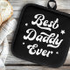 Porte-pots avec le texte "Best daddy ever" dans une police rétro entourée d'étoiles blanches sur un arrière - plan couleur noir ou personnalisé.