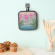Flamingo and palm tree tropical theme kitchen pot holder. Fun beach kitchen accessory.