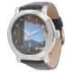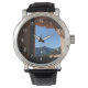 Uhr, Vintage Männeruhr mit schwarzem Lederarmband