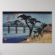 Man auf dem Pferd überquert eine Brücke durch Utagawa Hiroshige (1797 - 1858) , eine japanische ukiyo-e Künstlerin.