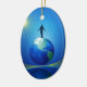 Mann auf Globe Keramik Ornament